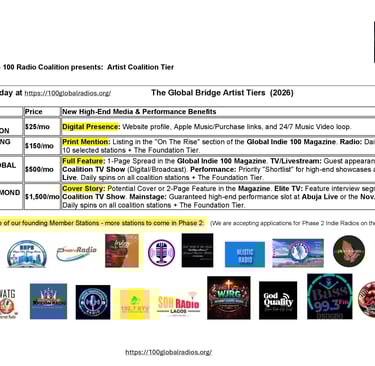 SEE THE TIERS & JOIN THE COALITION HERE: https://100globalradios.org/